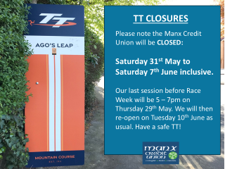 Please note that the Manx Credit Union will be closed over TT Race Week from Saturday 31st May to Saturday 7th June inclusive due to the...